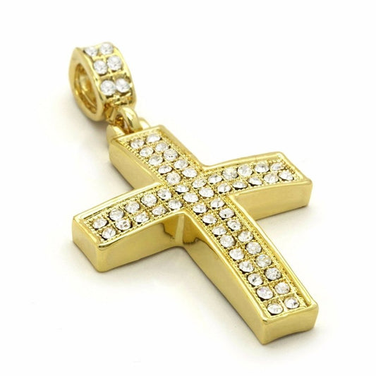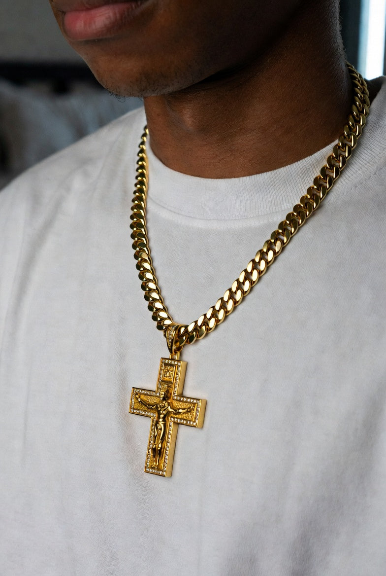 Mens Cross Necklace 14k Gold 24" Cuban Necklace